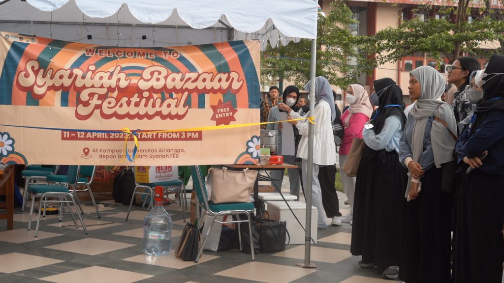 UNAIR NEWS – Himpunan Mahasiswa Ekonomi Islam (HIMA EKIS) Universitas Airlangga (UNAIR) mengadakan Syariah Bazaar Festival. Kegiatan tersebut merupakan acara yang bertujuan untuk memperkenalkan produk, khususnya mahasiswa EKIS UNAIR kepada masyarakat. Syariah Bazaar Festival berlangsung pada Selasa hingga Rabu (11-12/03/2023) di halaman Fakultas Ekonomi dan Bisnis (FEB) UNAIR.