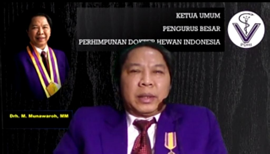 UNAIR NEWS – Selama masa pandemi, Organisasi Kesehatan Hewan Dunia (The World Organization for Animal Health / OIE) dan Asosiasi Dokter Hewan Dunia (The World Veterinary Association / WVA) menyatakan bahwa aktivitas terkait dengan pelayanan dokter hewan tergolong sebagai bidang kerja esensial. Mengenai hal itu, drh. H. Muhammad Munawaroh, MM., pada saat mengisi kegiatan webinar yang diadakan oleh FKH UNAIR (24/08/2020), menyampaikan bahwa pelayanan dokter hewan merupakan salah satu pelayanan penting selama pandemi COVID-19, terutama dalam memenuhi produk pangan yang aman dan kesejahteraan hewan.