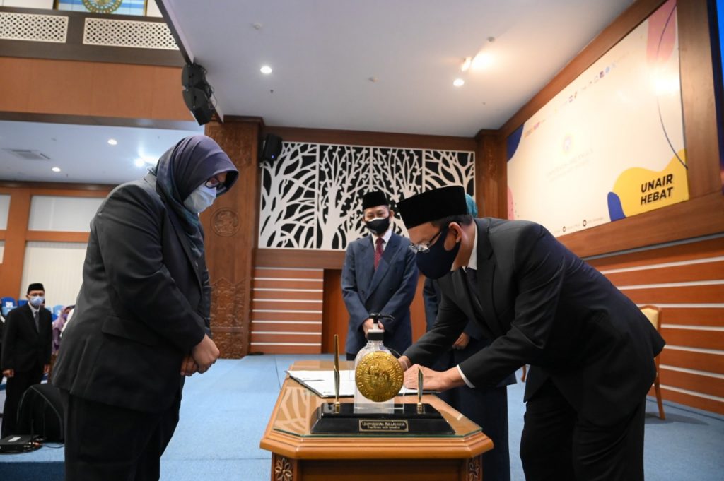 Bertempat di Aula Garuda Mukti Kampus C UNAIR, pelantikan tersebut dilaksanakan dengan menjalankan protokol kesehatan yang sangat ketat. Bahkan, semua pejabat yang dilantik wajib mengikuti rapid test terlebih dahulu.