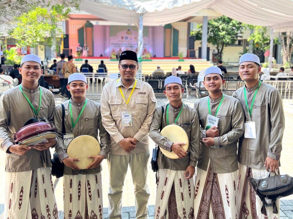 UNAIR NEWS – Universitas Airlangga (UNAIR) tunjukkan prestasi gemilang dalam Musabaqah Tilawatil Quran Mahasiswa Nasional (MTQMN) XVIII 2025 yang diselenggarakan oleh Kementerian Pendidikan Tinggi, Kebudayaan, Sains, dan Teknologi (Kemendiktisaintek). Kompetisi MTQMN XVIII terlaksana di Universitas Lambung Mangkurat, Banjarmasin pada Minggu-Jumat (5-10/10/2025). Dalam ajang tersebut, UNAIR berhasil meraih Juara II Cabang Musabaqah Maulid Nabi (MMN) melalui penampilan apik tim kafilahnya.