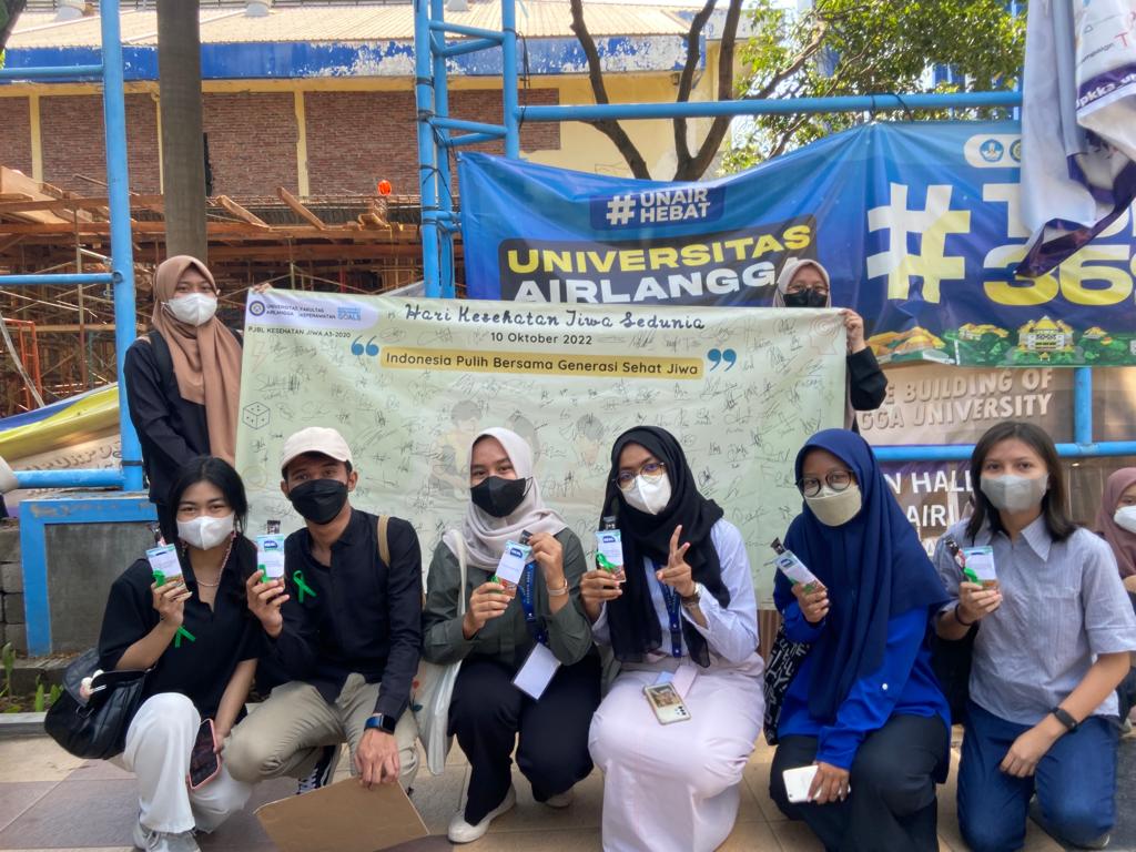 UNAIR NEWS – Bagikan snack dan juga berikan kata motivasi, mahasiswa Fakultas Keperawatan UNAIR angkatan 2020 peringati Hari Kesehatan Jiwa Nasional di Gedung Kuliah Bersama Kampus C UNAIR Mulyorejo, Senin (10/10/2022).