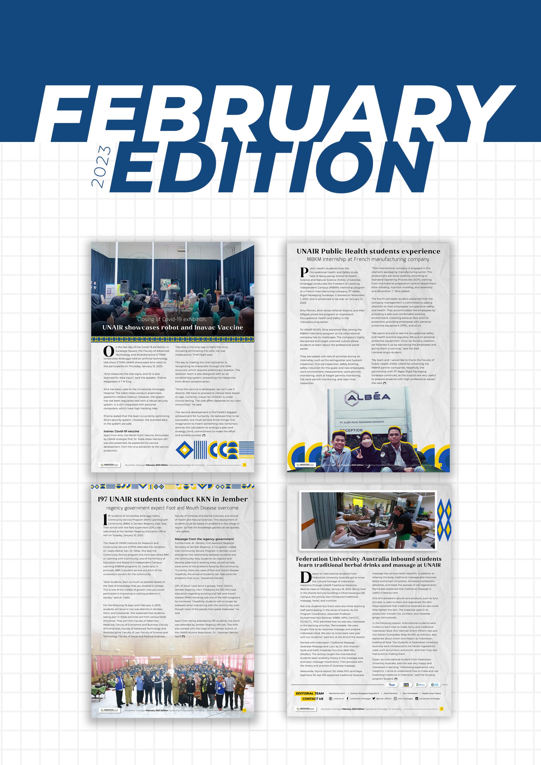 Di era keterbukaan informasi publik, newsletter Universitas Airlangga diterbitkan untuk melengkapi sarana informasi di bidang ilmu pengetahuan. Tidak hanya pengetahuan itu sendiri, melainkan juga ilmuwan atau pakar yang mendedikasikan dirinya untuk perkembangan ilmu pengetahuan. Pengelolaan Newsletter ini di bawah koordinasi Pusat Komunikasi dan Informasi Publik UNAIR. Newsletter ini dapat dibaca dan diunduh dengan cara mengklik gambar di bawah ini.