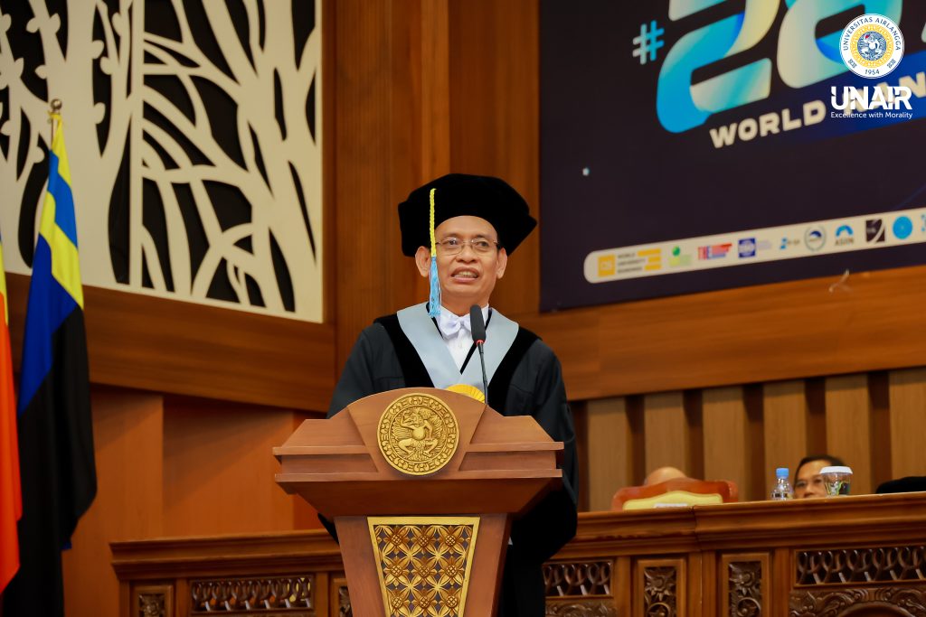 Pada akhir sambutannya, ia berpesan agar UNAIR bisa lebih condong untuk menerapkan program-program entrepreneurship, alih-alih menjadi research university. “Hilirisasi harus segera dilakukan. Pembentukan start-up bisnis saya kira perlu ditingkatkan di lingkungan kampus, agar kita bisa meningkatkan kesejahteraan UMKM kampus dan kancah nasional,” jelasnya.
