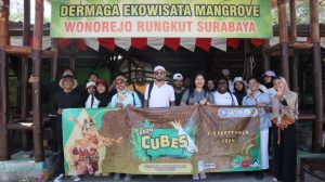 Peserta internasional CUBES melakukan tanam mangrove di Wonorejo, Surabaya Kementerian Hubungan Luar Badan Eksekutif Mahasiswa Fakultas Ilmu Budaya Universitas Airlangga (HUBLU BEM FIB UNAIR) sukses