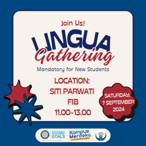 Setiap tahun, Program Studi Ilmu Linguistik Fakultas Ilmu Budaya Universitas Airlangga (FIB UNAIR) melalui Himpunan Mahasiswa (HIMA) Lingua mengadakan kegiatan Lingua Gathering. Begitupun tahun ini,