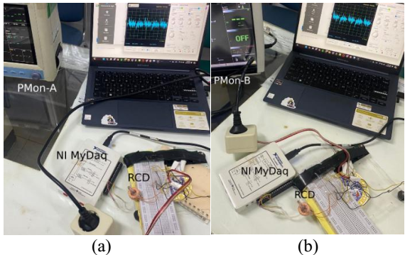 Gambar 2 menunjukkan hasil pengukuran untuk kedua PMon. Sekilas, sinyal yang diperoleh hampir sama, meskipun nilai maksimum atau minimumnya tidak terlalu jauh. Perbedaannya dapat dibandingkan. Dengan sinyal dari catu daya AC yang memiliki bentuk gelombang sinus, bentuk gelombang yang diturunkan juga menunjukkan pola periodik dengan puncak dan lembah seperti yang ditunjukkan pada Gambar 2 dengan panjang hingga 2.000. Kedua bentuk gelombang gabungan tersebut diperoleh menggunakan NI myDAQ dari masing-masing PMon.