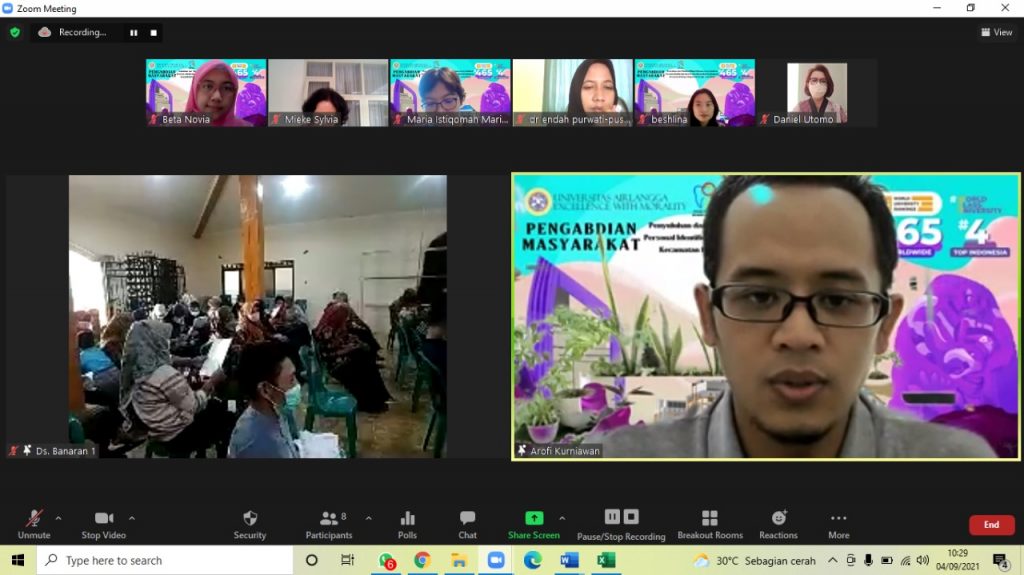 Mengingat pentingnya Personal Identification Record untuk kepentingan identifikasi, FKG Unair, dalam hal ini dari bagian Odontologi Forensik, mengadakan penyuluhan dan pelatihan serta sosialisasi personal identification record bekerjasama dengan Masyarakat Desa Banaran serta Puskesmas Pulung. Kegiatan yang bertajuk “PENYULUHAN DAN PELATIHAN MITIGASI BENCANA SERTA SOSIALISASI PERSONAL IDENTIFICATION RECORD PADA MASYARAKAT DESA BANARAN, KECAMATAN PULUNG KABUPATEN PONOROGO, JAWA TIMUR” dilakukan pada tanggal 4 September 2021 lalu secara daring melalui zoom dengan dibantu tim lapangan dari puskesmas Pulung dan desa Banaran. Sekitar 40 masyarakat Desa Banaran mengikuti acara ini yang bertempat di balai desa. Para peserta yang mengikuti kegiatan tersebut dapat langsung mempraktekkan dengan cara mengisi buku personal identification record yang telah dibagikan oleh panitia setelah menyimak penjelasan cara pengisian buku tersebut oleh narasumber yaitu Arofi Kurniawan, drg., Ph.D. Para panitia pelaksana berharap kegiatan ini dapat terlaksana secara berkelanjutan. Pihak Puskesmas dan Perangkat Desa Banaran sangat mengharapkan adanya kegiatan serupa untuk memberi pelatihan kepada masyarakat yang berada di wilayah kecamatan Pulung kabupaten Ponorogo dalam hal pengisian data personal identification record ini.
