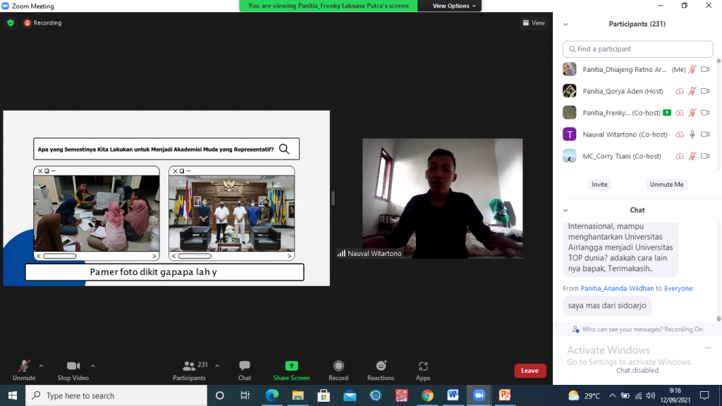 UNAIR NEWS – Tri dharma perguruan tinggi menyebutkan ada tiga poin penting meliputi, Pendidikan dan Pengajaran, Penelitian dan Pengembangan, dan Pengabdian Masyarakat. Peran mahasiswa dalam pengembangan kualitas pendidikan di suatu daerah, akan menjadi salah satu representatif kualitas pendidikan di daerah tersebut. Nauval Witartono, Ketua Keluarga Mahasiswa 2019-2020 menyampaikan beberapa peran mahasiswa PSDKU UNAIR Banyuwangi sebagai Representatif Kualitas Pendidikan di Indonesia pada (12/9).