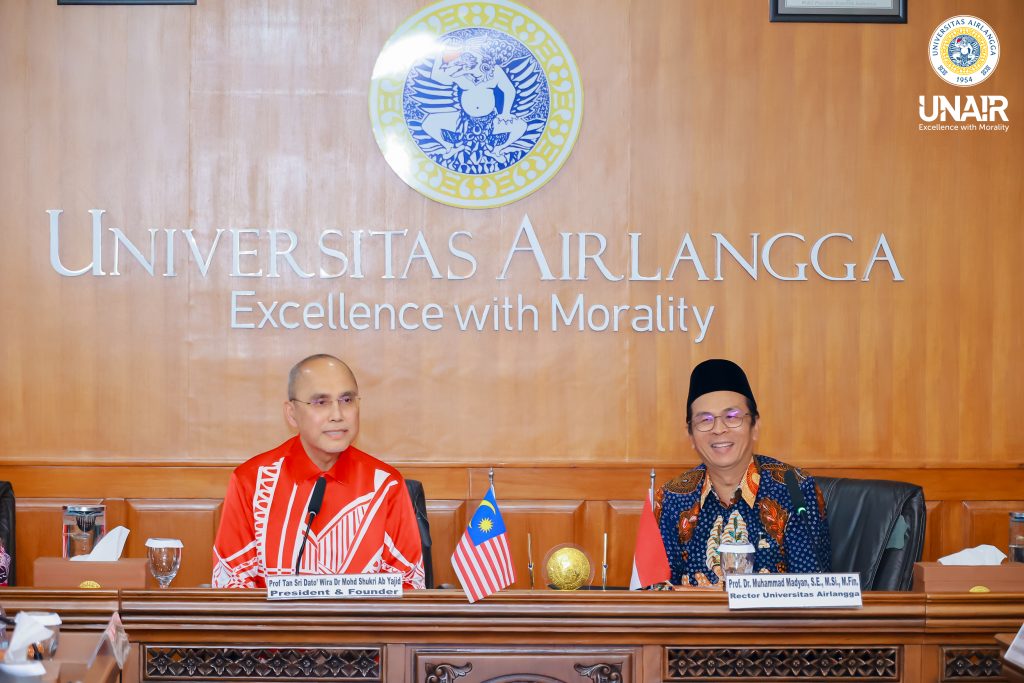 Rektor Universitas Airlangga, Prof Dr Muhammad Madyan SE MSi MFin bersama Professor Tan Sri Dato’ Wira Dr. Mohd Shukri Ab Yajid dari MSU Malaysia, Selasa (25/11/ 2025) (Foto: PHMP UNAIR)