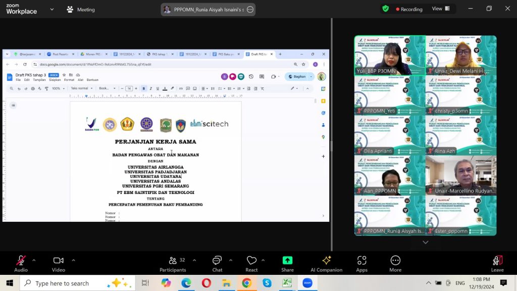 Pada tanggal 19 Desember 2024, Fakultas Farmasi Universitas Airlangga (FF UNAIR) diundang oleh Badan Pengawas Obat dan Makanan (BPOM) untuk membahas perjanjian kerjasama.