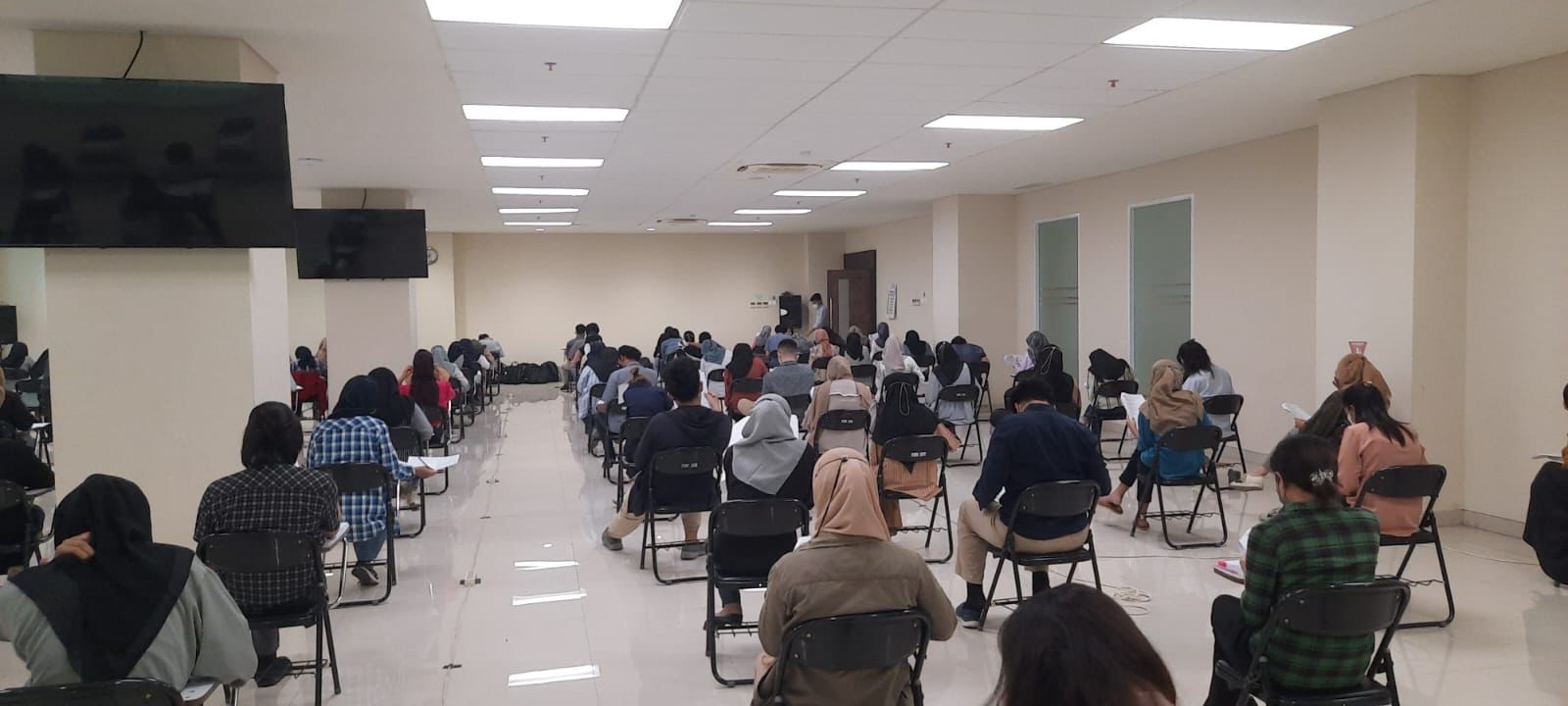 The seats for each examinee are intentionally spaced apart and examinees are also required to wear a mask and wash their hands or use a hand sanitizer to avoid transmission of the COVID-19 virus.
