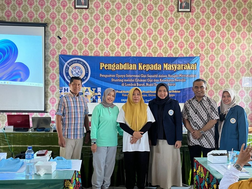 Prodi Kedokteran dan Pendidikan Profesi Dokter Fakultas Kedokteran Universitas Airlangga (FK UNAIR) merasa terpanggil untuk berperan serta dalam Gerakan penurunan stunting melalui pengabdian masyarakat yang bertema “Penguatan Upaya Intervensi Gizi Sensitif dalam Rangka Menurunkan Stunting melalui Edukasi Gizi dan Kesehatan Reproduksi Remaja Di Lombok Barat, Nusa Tenggara Barat. Mitra sasaran dari kegiatan pengabdian kepada masyarakat ini adalah SMA Negeri 1 Gunungsari di Lombok Barat. Sekolah ini merupakan SMA negeri satu-satunya yang ada di kawasan ini.