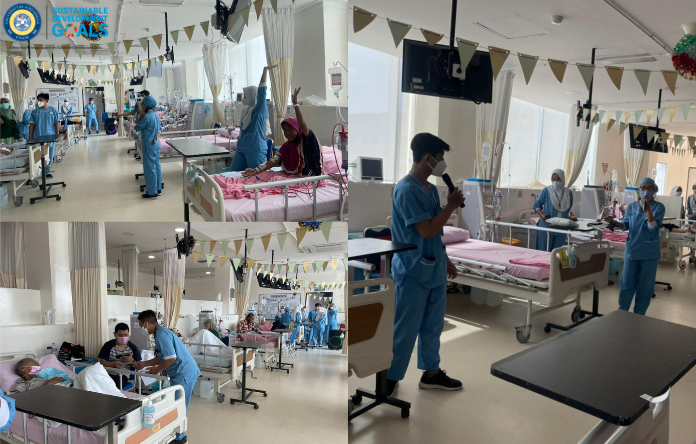 NERS NEWS – Mahasiswa Profesi Ners Kelompok 3 Stase Keperawatan Medikal Bedah (KMB) Fakultas Keperawatan Universitas Airlangga telah melaksanakakan kegiatan penyuluhan kesehatan rumah sakit (PKRS) dengan topik “Exercise Intradialysis pada Pasien Hemodialisis” pada Sabtu 18/03/2023. Kegiatan ini dilaksanakan secara langsung di ruang Hemodialisis lantai 6 RSUA dengan sasaran pasien dan keluarga.