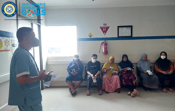 Hal ini telah dilakukan oleh beberapa mahasiswa keperawatan Universitas Airlangga yaitu kelompok 3 stase Keperawatan Medikal Bedah (KMB) yang sedang melaksanakan praktik profesi Ners di ruang Irna 6 Rumah Sakit Universitas Airlangga. PKRS dengan judul “Penatalaksanaan penyakit Asma” dilaksanakan dengan tujuan untuk meningkatkan pengetahuan keluarga dan pasien tentang penyakit asma. PKRS dilaksanakan di lantai 6 RSUA dan diikuti oleh 16 peserta yang merupakan keluarga pasien yang sedang dirawat di ruangan tersebut dan 5 mahasiswa praktik serta 1 pembimbing ruangan atau Clinical Instructur.