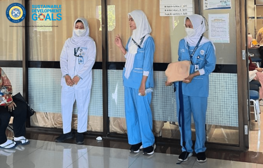 Pada hari Kamis, 10 Juli 2025, mahasiswa Program Profesi Ners Universitas Airlangga mengadakan Pendidikan Kesehatan Rumah Sakit (PKRS) dengan judul “Periksa Payudara Sendiri (SADARI)” di Poli Obgyn Rumah Sakit Universitas Airlangga yang bertujuan untuk mengedukasi pasien terkait bagaimana cara melakukan pemeriksaan sederhana untuk mendeteksi dini adanya tanda-tanda kanker payudara.