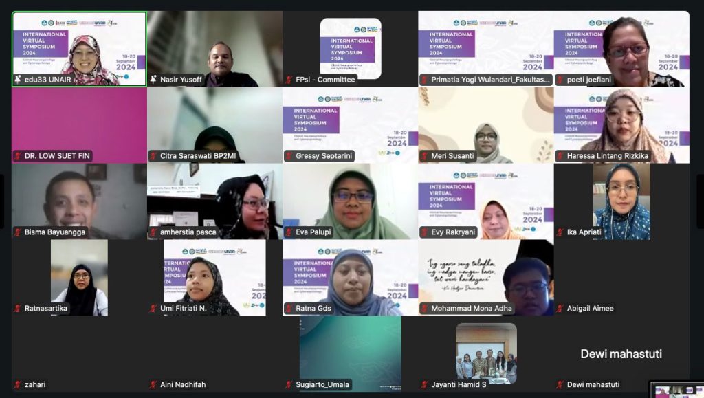 Fakultas Psikologi Universitas Airlangga sukses menyelenggarakan “International Virtual Symposium 2024” pada hari ini dengan mengangkat tema Clinical Neuropsychology and Cyberpsychology. Acara ini menghadirkan sejumlah pembicara terkemuka dari berbagai belahan dunia, salah satunya adalah Dr. Mohd Nasir Che Mohd Yusoff dari Universiti Sains Malaysia. Dr. Nasir menyampaikan paparan bertajuk “Understanding The Human Behaviour through The Lens of Social and Cultural Neuroscience: A Malaysian Findings.”