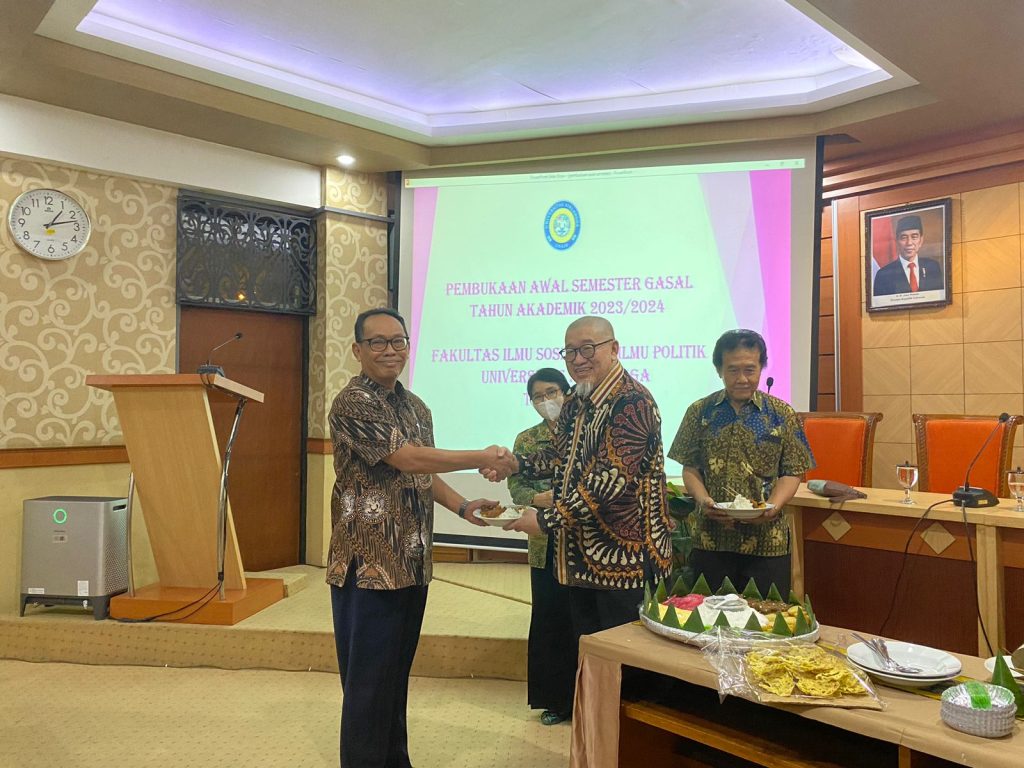 SURABAYA – ADM WEB | Untuk mengawali pelaksanaan semester gasal tahun akademik 2023/2024, FISIP UNAIR menyelenggarakan kegiatan pembukaan semester pada Senin (4/9/2023) yang secara simbolik menjadi fresh start bagi para dosen dan mahasiswa. Kegiatan yang dilakukan di Ruang Adi Sukadana FISIP tersebut dihadiri oleh Dekan FISIP, para dosen, hingga perwakilan mahasiswa dari tujuh program studi. Sebagai pembuka, Prof.Dr.Bagong Suyanto,Drs.,M.Si, selaku Dekan FISIP menyebutkan bahwa forum yang dilaksanakan pada siang hari itu ditujukan agar seluruh keluarga besar FISIP dapat berkumpul dan menyapa satu sama lain.