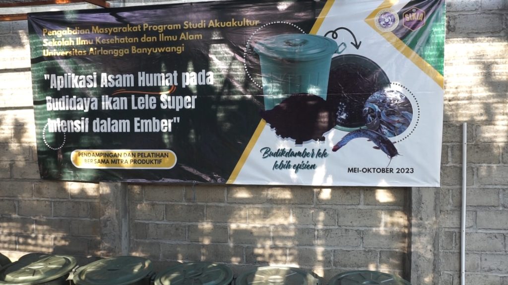 BERITA SIKIA – Perikanan budidaya merupakan salah satu komoditas unggulan di Kabupaten Banyuwangi. Dalam rangka meningkatkan kapasitas masyarakat terkait hal tersebut, dilakukan kegiatan Pengabdian Masyarakat dengan mengangkat “Aplikasi Asam Humat pada Budidaya Ikan Lele Super Intensif Dalam Ember” yang diinisiasi oleh Program Studi Akuakultur Sekolah Ilmu Kesehatan dan Ilmu Alam (SIKIA) Universitas Airlangga. Pengabdian masyarakat dilakukan di kolam budidaya Muncul Fish Farm yang berlokasi di Kecamatan Glagah, Banyuwangi Selasa (15/08/2023).