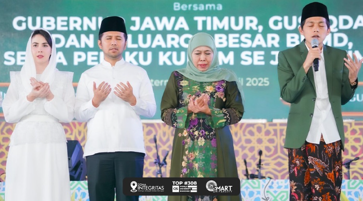 KH. Muhammad Iqdam Kholid yang akrab disapa Gus Iqdam yang hadir sebagai penceramah menyampaikan optimisme: “Dengan kerja keras dan doa, Jatim akan tetap adem ayem (tenang) meski di tengah gejolak global.”