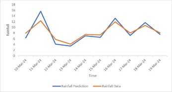 Selanjutnya, hasil-hasil menunjukkan bahwa nilai curah hujan tidak berfluktuasi secara signifikan. Hanya saja tidak bisa dijadikan bahan justifikasi dalam membaca hasil prediksi karena memerlukan tenaga ahli bidang cuaca untuk membaca nilai hasil prediksi secara detail. Namun, hal itu bisa saja dijadikan acuan dalam menentukan