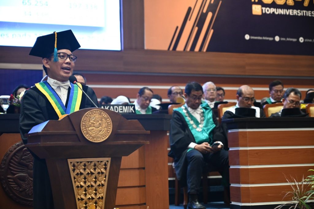 UNAIR NEWS – Universitas Airlangga (UNAIR) kembali mengukuhkan Guru Besar pada Kamis (19/12/19). Spesialnya, kali ini Wakil Rektor IV UNAIR Prof. Junaidi Khotib, S.Si., M.Kes., Ph.D. menjadi salah satu yang dikukuhkan sebagai Guru Besar dalam Bidang Ilmu Biofarmasetika.