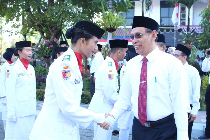 Raras congratulated by UNAIR Rector Prof. Dr. Mohammad Nasih, SE., MT., Ak., CMA during the independence day ceremony at UNAIR. (Photo: Personal Documentation)