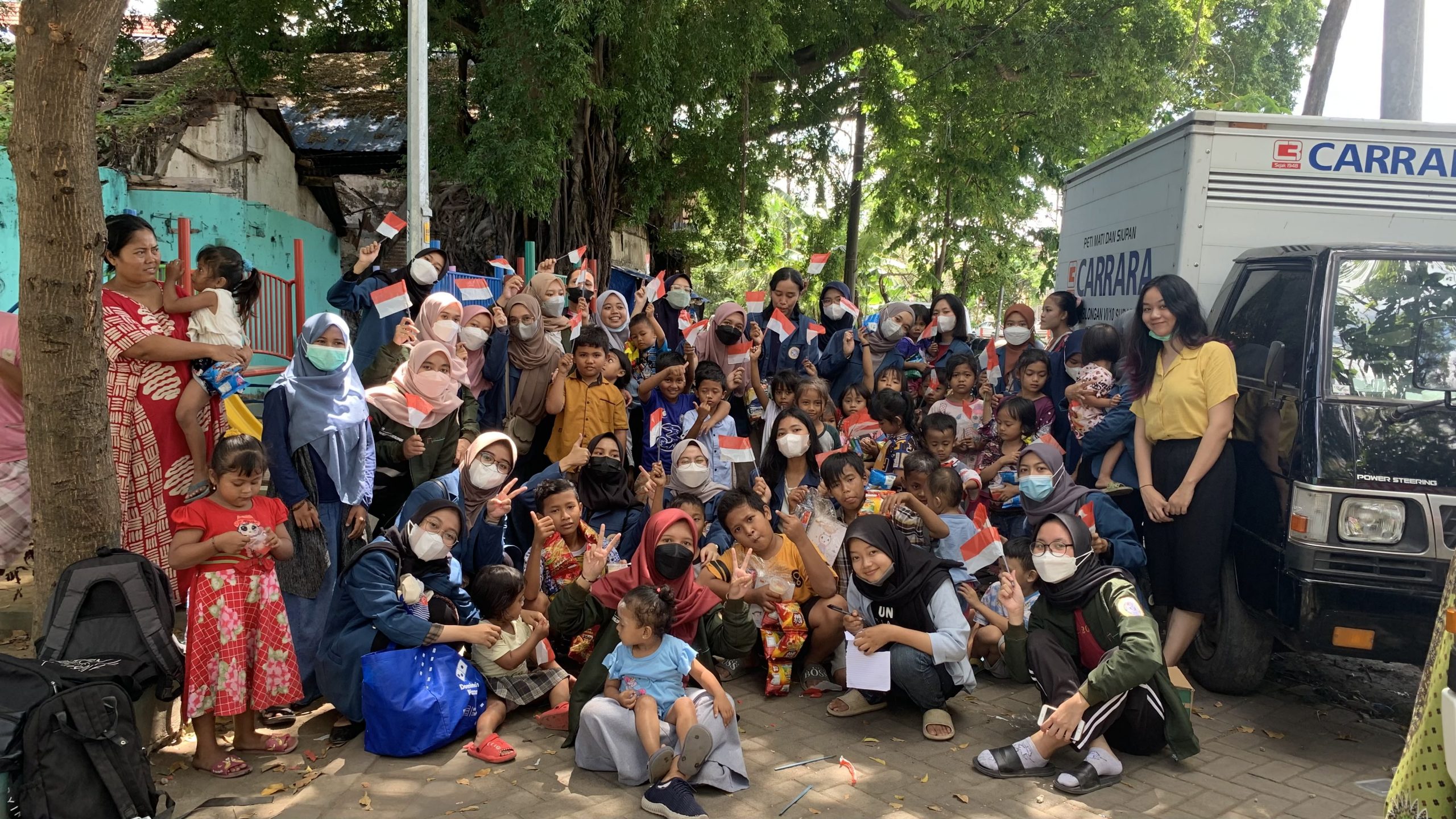 UNAIR NEWS – Gembira, begitulah gambaran anak-anak yang sedang bermain di Jalan Gemblongan, Minggu (14/8/2022). Mahasiswa yang tergabung dalam organisasi UNAIR Mengajar menggelar acara Joy