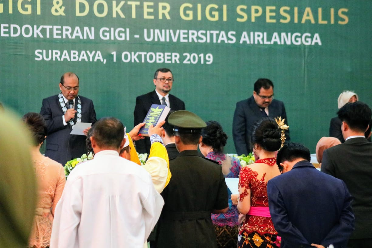 UNAIR NEWS- Fakultas Kedokteran Gigi (FKG) Universitas Airlangga (UNAIR) melaksanakan pengambilan sumpah dokter gigi dan dokter gigi spesialis pada Selasa (01/10/2019). Jumlah mahasiswa yang disumpah
