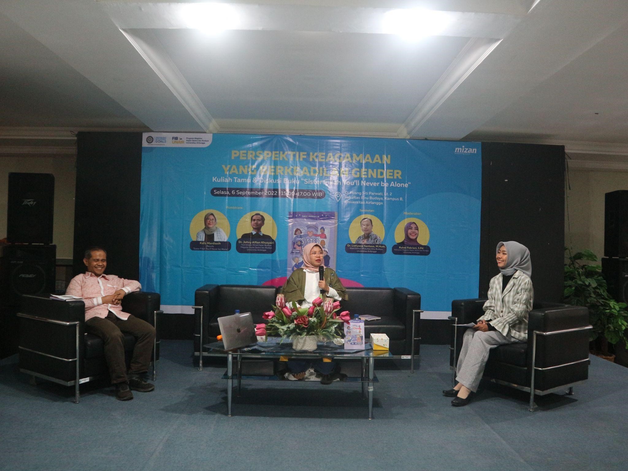 UNAIR NEWS – Program Magister Kajian Sastra dan Budaya (KSB) Universitas Airlangga (UNAIR) berkolaborasi dengan Mizan Publishing House menyelenggarakan kuliah tamu pada Selasa (6/9/2022). Kali
