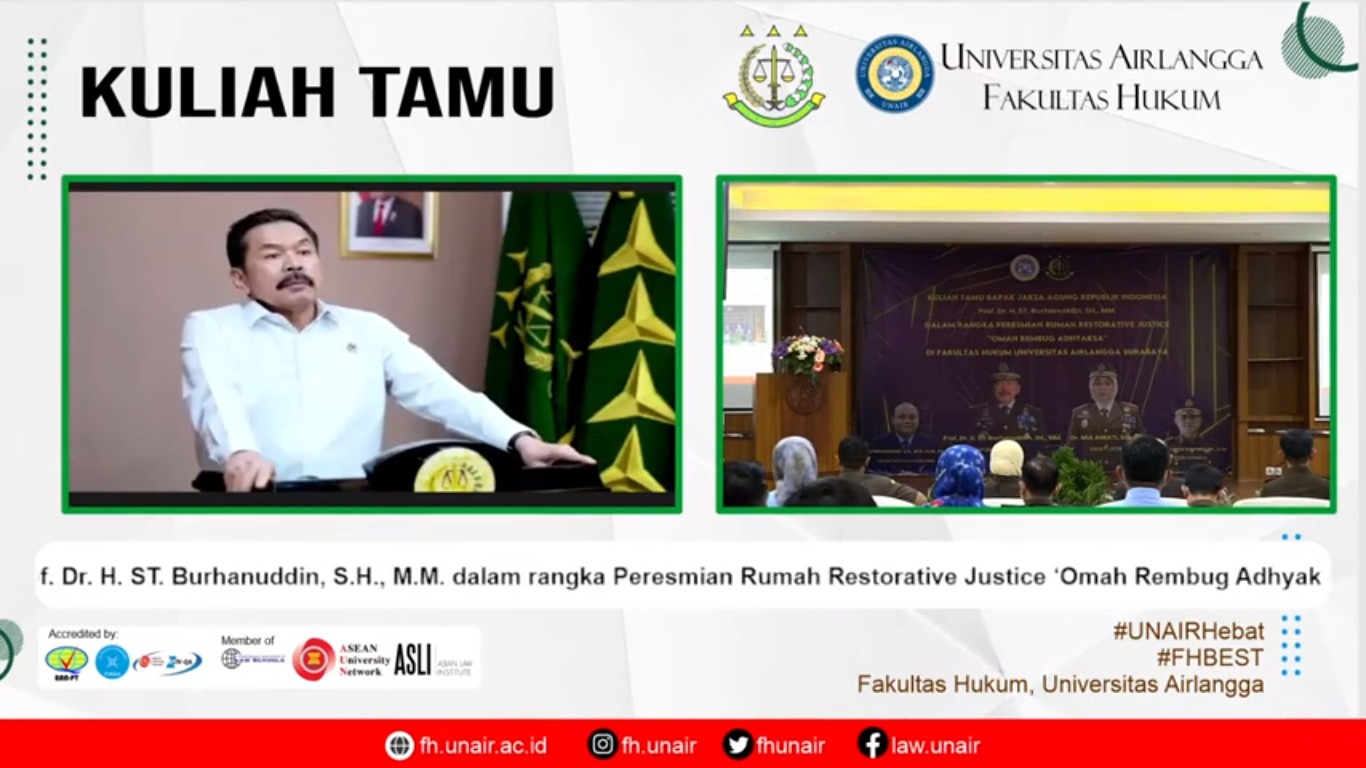 UNAIR NEWS – Kejaksaan RI telah menginisiasi 410 rumah Restorative Justice (RJ) yang tersebar di 33 wilayah Kejaksaan Tinggi di Indonesia. Rumah-rumah ini guna mendekatkan