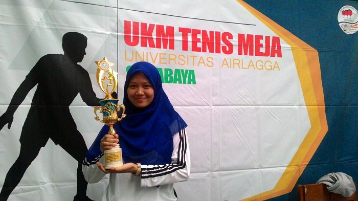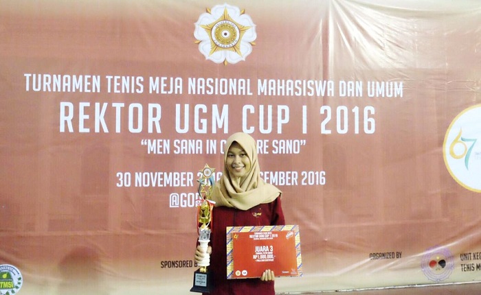 Viviani Nadyaningrum, mahasiswa Fakultas Ekonomi dan Bisnis 2016 berhasil menyabet juara III tunggal putri cabang olahraga tenis meja, Minggu (4/12).