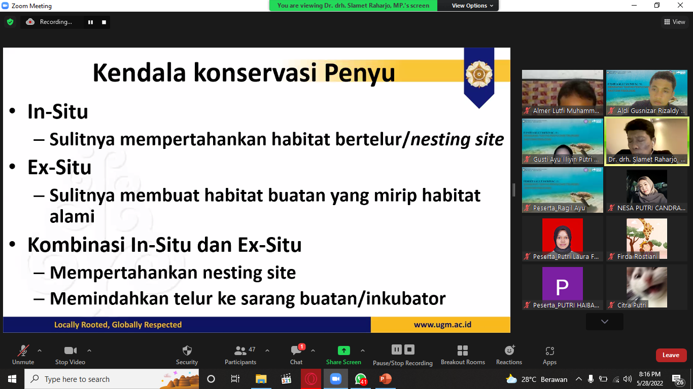 UNAIR NEWS – Penyu merupakan hewan laut yang dilindungi negara. Di Indonesia, terdapat 6 jenis penyu. Yaitu, Caretta caretta (Penyu tempayan), Chelonia mydas (Penyu hijau),
