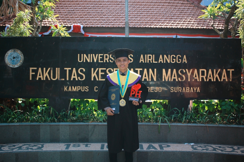 UNAIR NEWS – Saiful Azis Setyawan mahasiswa angkatan 2015 PSDKU Universitas Airlangga di Banyuwangi prodi S1 Kesehatan Masyarakat telah menyelesaikan pendidikannya tepat waktu. Azis sapaan