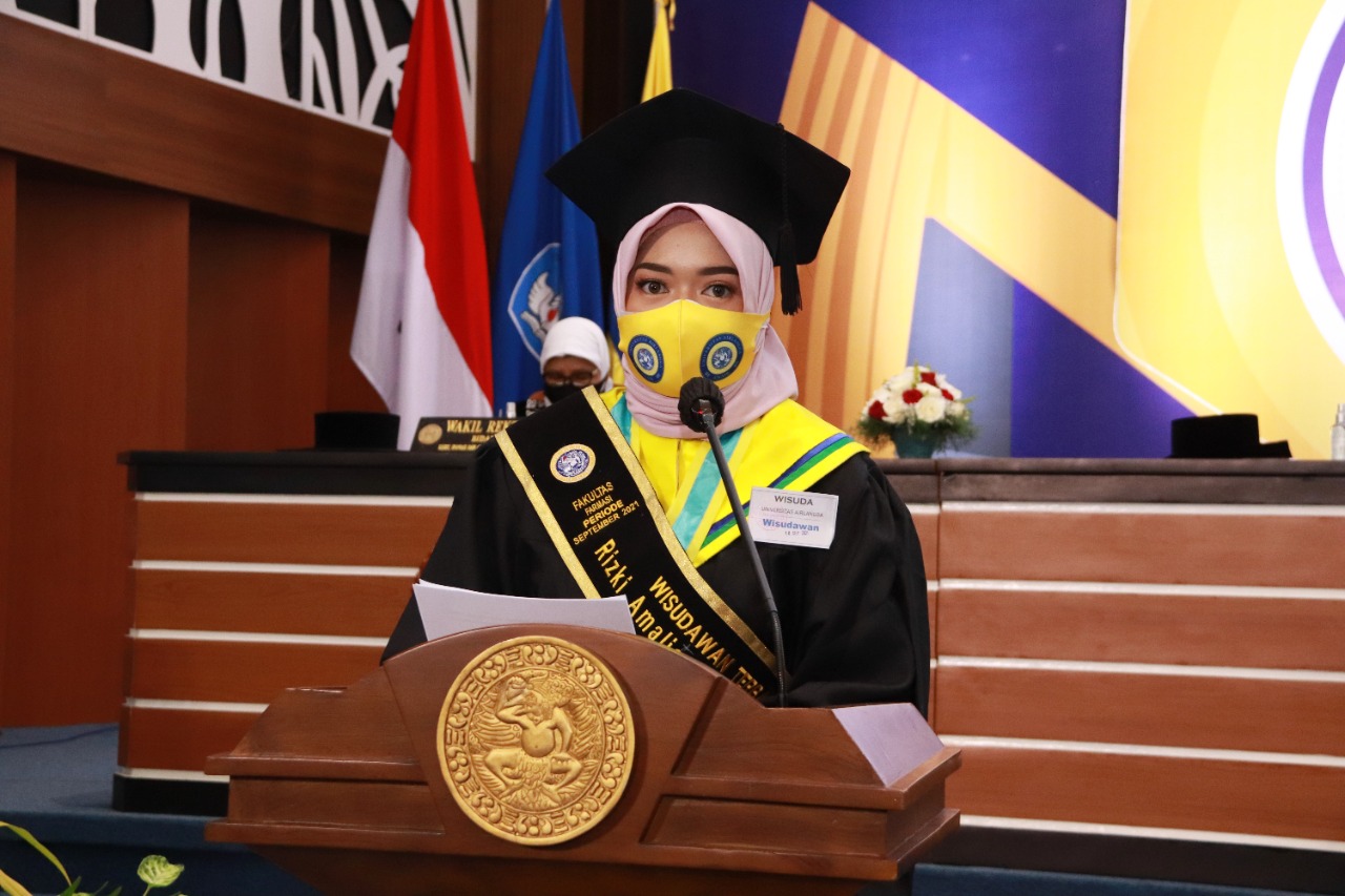UNAIR NEWS – Wisuda Universitas Airlangga (UNAIR) periode September 2021 kembali digelar pada Sabtu (18/9/2021). Wisuda hari pertama tersebut turut menghadirkan sambutan dari Perwakilan Pengurus