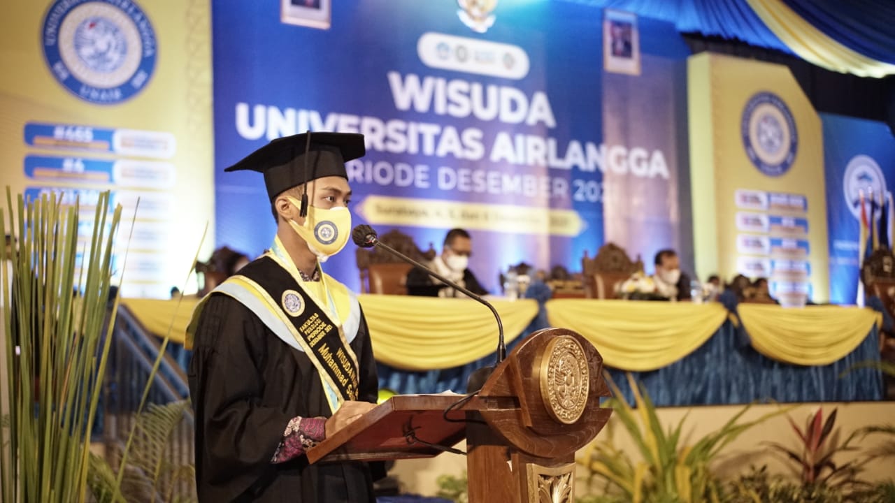 UNAIR NEWS – Rektor Universitas Airlangga Prof. Dr. Mohammad Nasih, SE., MT., Ak., CMA., memberikan sambutan hangat pada prosesi wisuda periode Desember 2021 hari kedua
