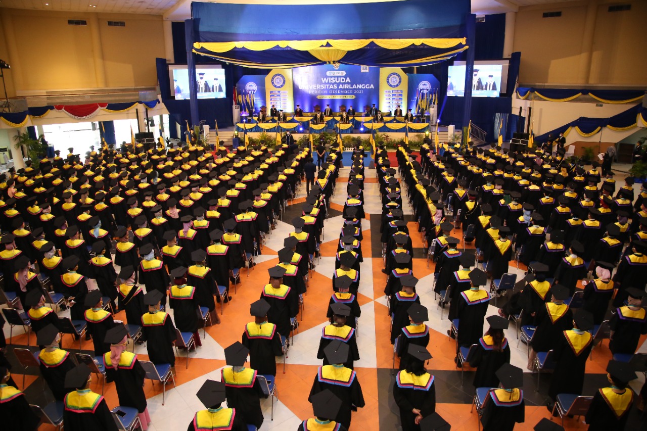 UNAIR NEWS – Wisuda Universitas Airlangga (UNAIR) periode Desember 2021 hari kedua kembali digelar pada Minggu (05/12/21) secara luring. Bertempat di Airlangga Convention Center (ACC)