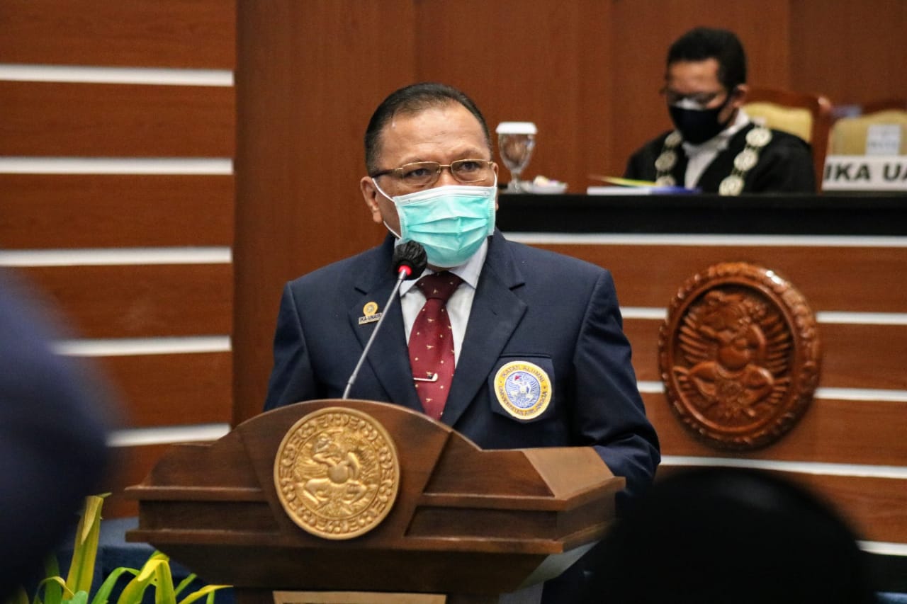 UNAIR NEWS – Hari pertama pelaksanaan wisuda periode September 2020, Rektor Universitas Airlangga Prof. Dr. Mohammad Nasih, SE., MT., Ak., CMA., mewisuda sebanyak 1.353 lulusan dari jenjang diploma