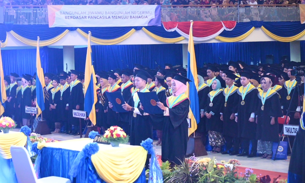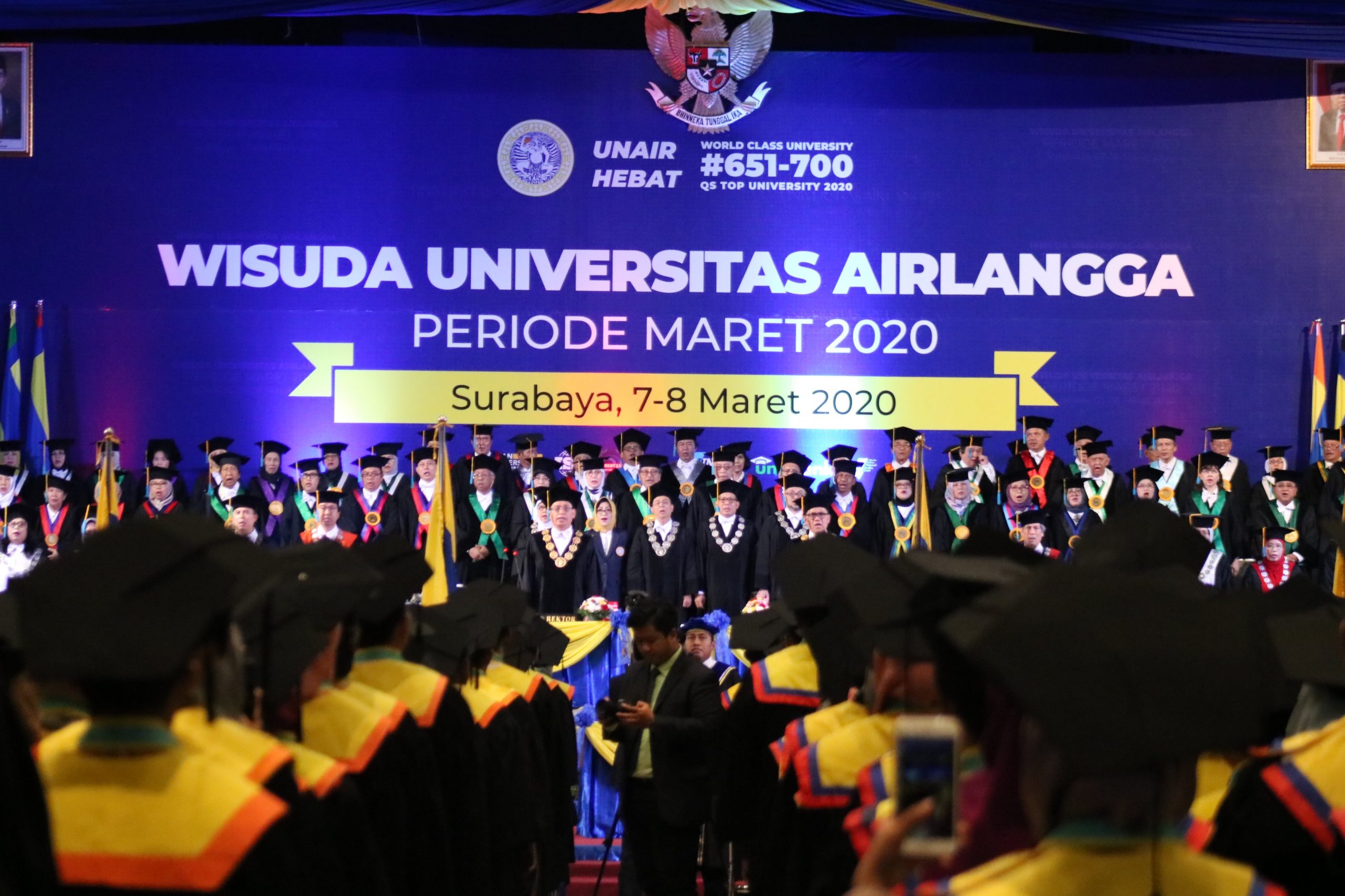 UNAIR NEWS – Pengukuhan wisudawan Universitas Airlangga (UNAIR) yang digelar pada Minggu (8/3/2020) berjalan dengan sangat khidmat. Dibuka dengan iringan tembang Lir-ilir Rektor Universitas Airlangga