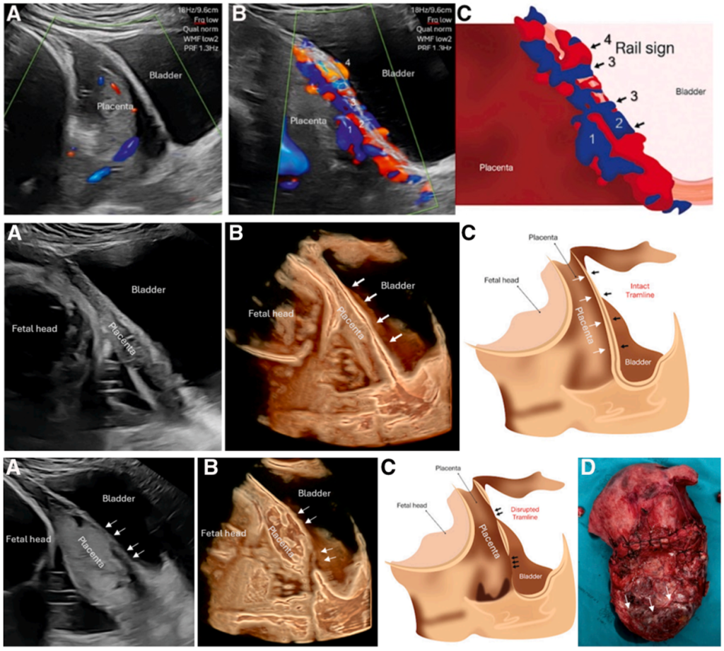 Diagnosis spektrum plasenta akreta semakin berkembang seiring kemajuan pemeriksaan ultrasonografi, dari tanda dasar dua dimensi seperti lakuna plasenta hingga peningkatan aliran darah yang khas. Kini, penggunaan Doppler warna dan pencitraan tiga dimensi memperkenalkan tanda baru, yaitu rail dan tramline, yang memberikan informasi lebih spesifik tentang invasi plasenta. Meski namanya mirip dan sering membingungkan, kedua tanda ini menunjukkan aspek yang berbeda sehingga penting untuk dipahami secara tepat.