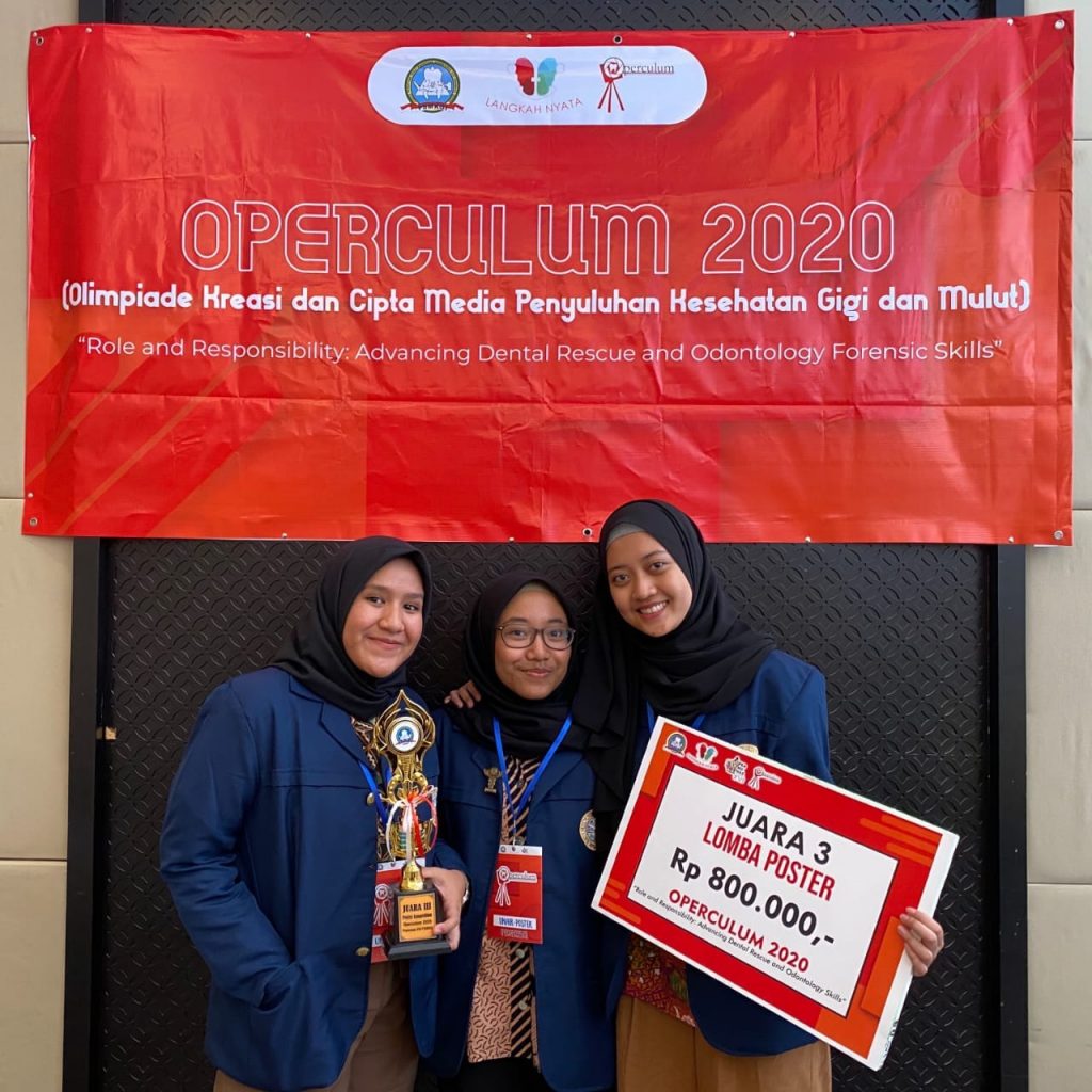Three students, Ajda Duhita Ghassani (class 2018), Raissa Callista Anyndya (2008), and Annisa Rahmaputri (2018), in one team succeeded in winning in the 3rd best Poster Competition. They made the achievement after setting aside 28 other participants. The first and second best winners were Dr. Moestopo University and the University of Indonesia FKG students.