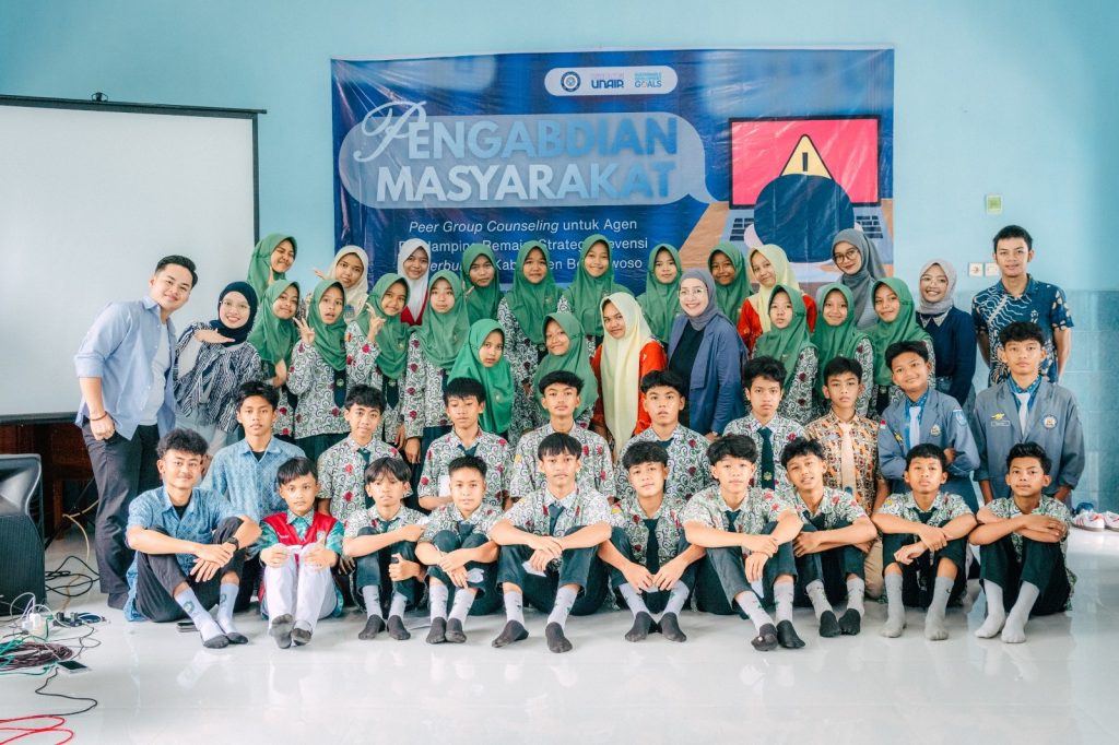 UNAIR NEWS – Tim Pengabdian Masyarakat Fakultas Psikologi Universitas Airlangga (UNAIR) menggelar kegiatan Pengabdian Masyarakat Anti Cyberbullying di SMP Negeri 7 Bondowoso dengan partisipasi perwakilan seluruh siswa SMP Negeri di Bondowoso pada Selasa (13/1/2026) hingga Rabu (14/1/2026). Kegiatan bertema Peer Group Counseling untuk Agen Pendamping Remaja: Strategi Prevensi Cyberbullying di Kabupaten Bondowoso itu menyasar guru dan siswa melalui pendekatan psikoedukatif serta praktik keterampilan psikologis.