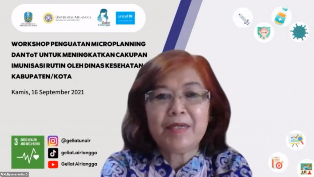 UNAIR NEWS – Program kemitraan UNAIR-UNICEF Indonesia telah mulai berjalan. Agenda yang tertuang dalam Program Cooperation Agreement itu difokuskan untuk mengatasi persoalan kesehatan di Jawa Timur. Salah satu kegiatannya adalah Workshop bertajuk “Penguatan Microplanning dan ToT untuk Meningkatkan Cakupan Imunisasi Rutin di Jawa Timur” yang diselenggarakan secara daring Kamis (16/9/2021) kemarin.
