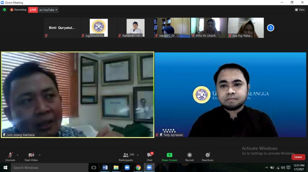 Anticipating this issue, Universitas Airlangga through the Faculty of Medicine holds a special online seminar (webinar) for administrative staff. The webinar discussing anticipative measures for the spread of Covid-19 was held on Tuesday afternoon, January 5, 2021. Attending as speaker in the webinar was dr Isnin Anang M SpP (K) and dr Tedy Apriawan SpBS (K) as moderator.