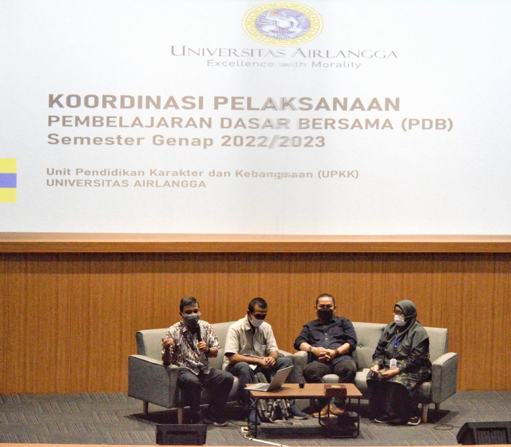 UNAIR NEWS – Unit Pendidikan Kebangsaan dan Karakter (UPKK) Universitas Airlangga pada Sabtu (28/1/2023) melakukan pembekalan terhadap 255 dosen pengampu (MK) mata kuliah Pembelajaran Dasar Bersama (PDB). Bertempat di Auditorium lantai 9, GKB Kampus C Mulyorejo, Universitas Airlangga Surabaya, kegiatan ini bertujuan untuk penguatan model pembelajaran berkarakter di UNAIR, khususnya di mata kuliah PDB. Di dalam penguatan tersebut juga disampaikan materi khusus terkait pencegahan kekerasan seksual di pendidikan tinggi.