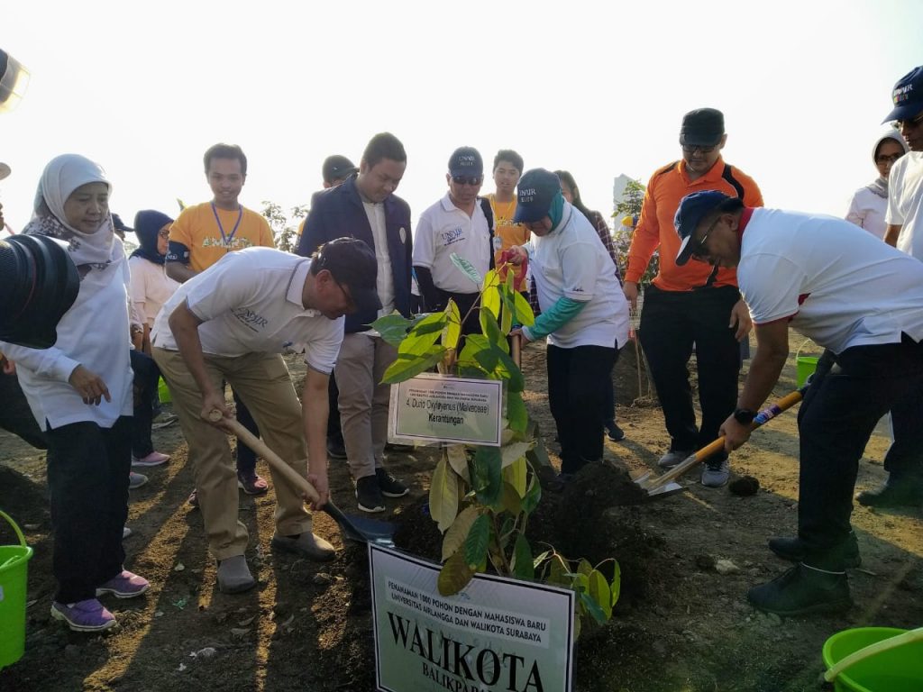 Menyikapi hal tersebut, Universitas Airlangga (UNAIR) menyambut mahasiswa baru dengan mengadakan penanaman 1000 pohon pada Minggu (4/8/2019) di belakang Gedung Fakultas Farmasi Kampus C UNAIR. Kegiatan itu merupakan serangkaian acara Amerta PKKMB UNAIR 2019.